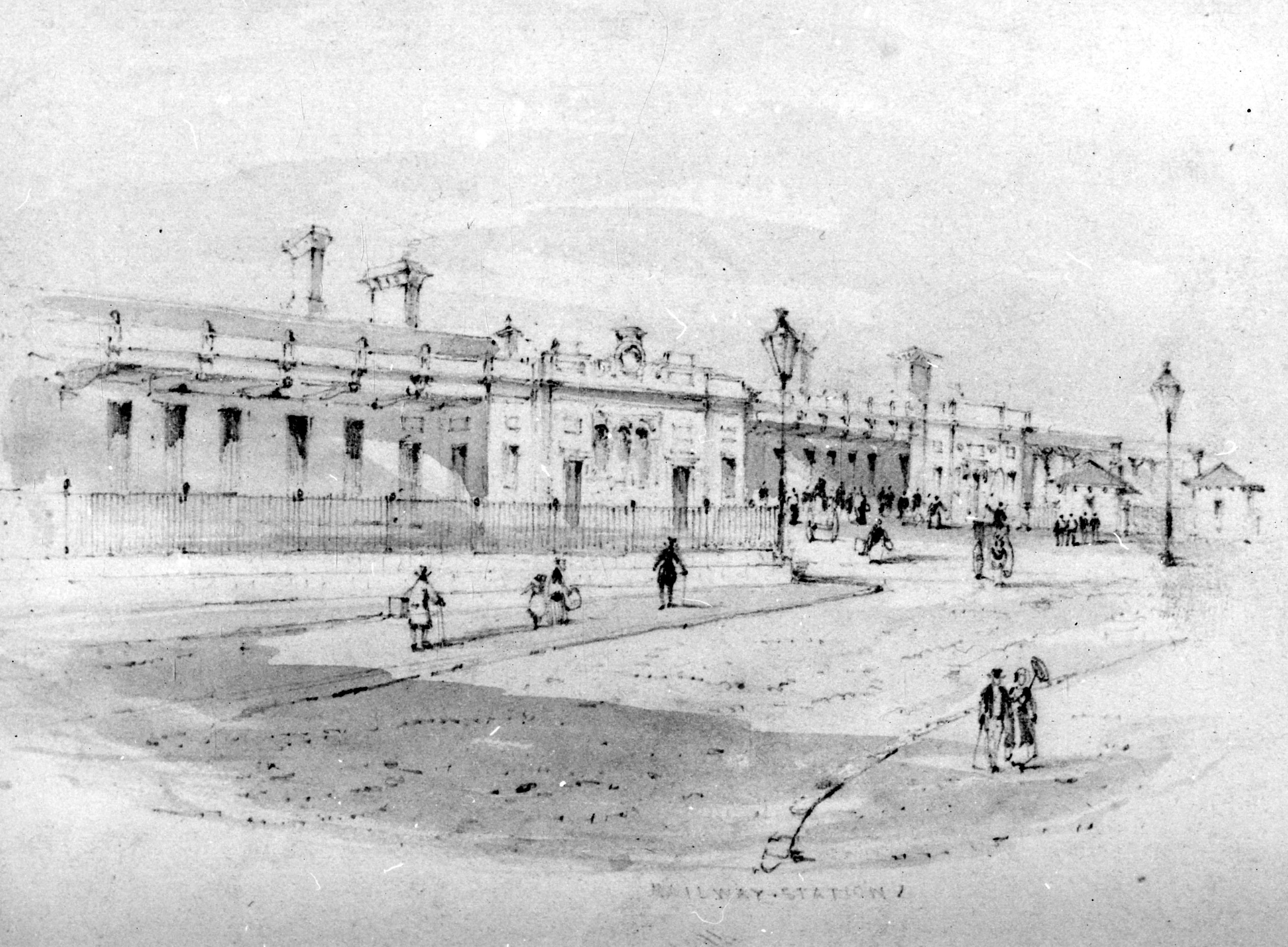 The external appearance of the original station is recorded in The Builder. There are several early images, including one by Kirkham apparently made on behalf of the contractor Thomas Brogden.